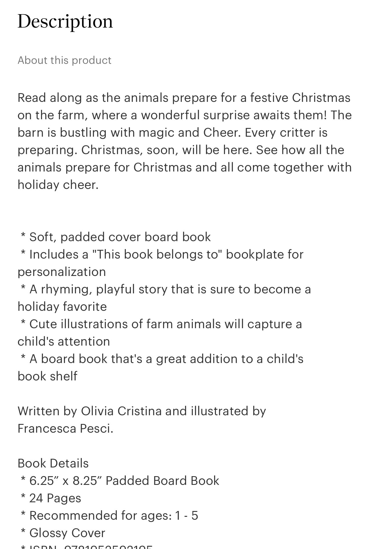Christmas on the farm kids book